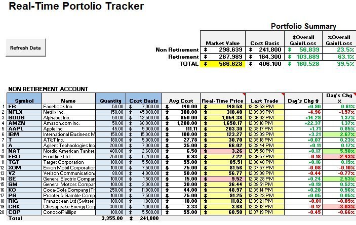 Just enter the stocks from your portfolio and your watch list. With one click of a button, instantly download real-time stock data - no more manual data entry to update your portfolio!